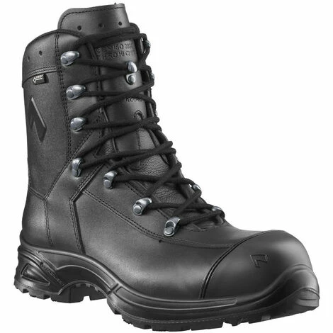 Matériau extérieur Cuir imperméable, traité hydrophobe, respirant (5,0 mg/cm²/h), d’épaisseur 2,0 – 2,2 mm Doublure intérieure GORE-TEX® Performance; GORE-TEX® Laminat 4 couches, étanche et respirante. Doublure très résistante avec non-tissé intermédiaire. Confort thermique optimal pour toutes les saisons pour les plus hautes sollicitations. Protection supplémentaire contre les produits chimiques. Première semelle de montage En non-tissé semelle en non-tissé qui absorbe l’humidité. Semelle intérieure confortable, avec amorti, anti-humidité, antibactérienne Une coque de talon séparée assure un bon amorti et guidage du pied. Canaux «AIRFLOW». Semelle anti-perforation Semelle anti-perforation, flexible, légère, métallique. HAIX® Composite toe cap Embout de protection anatomique et ultra-léger en plastique renforcé en fibres pour des exigences de sécurité extrêmes. Semelle Semelle en cauoutchouc/PU avec un profil robuste urbain et tout terrain, un confort accru de déroulement de pied, résistant à l’usure et anti-dérapant – même par grand froid La clavette d’absorption PU avec son faible poids assure d’excellentes propriétés de marche. Très bonne isolation au froid. La semelle de marche est résistance à la chaleur, aux huiles et hydrocarbures et ne marque pas. HAIX® Climate System Le système d‘aération HAIX® Climate utilise le mouvement de va-et-vient de la marche pour évacuer la transpiration vers l‘extérieur par les ouvertures situées en haut de la tige et de la languette. HAIX® Vario Wide Fit System Les 3 semelles différentes permettent d’adapter individuellement l’amplitude de la chaussure. La semelle rouge (épaisseur intermédiaire) est fournie avec la chaussure. Les semelles jaune (épaisse-wide) et bleu (fine-narrow) doivent être commandées séparément. Sun Reflect Nouveau traitement du cuir: Les rayons du soleil sont réfléchis: Pour un meilleur confort thermique. Divers Eléments de lacage facile haut de gamme, renforcement dans la zone des pointes.