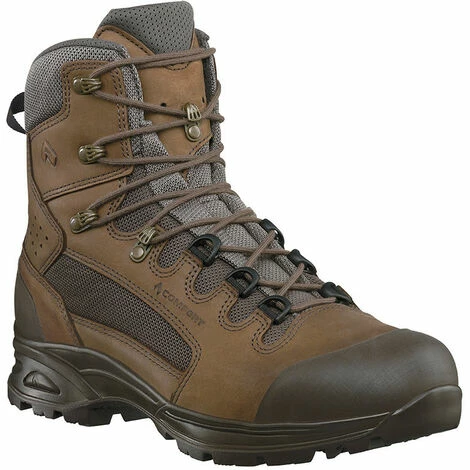 Matériau extérieur Cuir nubuck, hydrofuge, respirant (8,0 mg/cm²/h), 1,9 – 2,1 mm d’épaisseur. Doublure intérieure GORE-TEX® Extended; imperméable et respirant. Doublure hautement résistante rembourrée. Confort climatique optimal en toute saison et dans les conditions les plus extrêmes. Première semelle de montage Semelle intérieure en non tissé synthétique qui absorbe la sueur. stable en forme, rigide,diminue la pression ponctuelle (par ex. par des pierres). Semelle intérieure Confortable, avec amorti, anti-bactérienne. Une coque de talon séparée assure un bon amorti et guidage du pied. Semelle Semelle en caoutchouc nitrile / PU avec un profil robuste pour tous terrains; Pas et déroulé optimal grâce à la forme sportive de la pointe et du talon. résistance aux huiles et á l’essence, ne marque pas, isolation au froid et à la chaleur excellente Conforme à la norme EN ISO 20347:2012. HAIX® Climate System Le système d‘aération HAIX® Climate utilise le mouvement de va-et-vient de la marche pour évacuer la transpiration vers l‘extérieur par les ouvertures situées en haut de la tige et de la languette. Divers Isolation à la chaleur et au froid excellentebandes de caoutchouc appliquée manuellement dans la zone du talon et des doigts de pieds pour anugmenter la durée de vie, antistatique, boucle d‘enfilage.